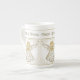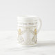 China elegante del navidad para servir a sus huéspedes del día de fiesta con un ángel afiligranado de oro de la tolerancia enmarcado por los rayos de sol de oro. Hay tipografía del oro sobre el deletreo del diseño, "ángel de la tolerancia". El diseño espiritual se repite tres veces alrededor de la taza/de la taza.