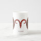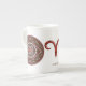 La mandala temática de Aries presenta una piedra de jaspe roja rodeada por el símbolo del signo, la constelación y el símbolo alquímico de Fuego entre filigree y tejidos. Esta taza está disponible en tamaños y estilos de jumbo, espresso y porcelana ósea.