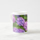 Una taza de café de porcelana de bonito con hortensias rosas, moradas y azules de una fotografía de Judy Adamson. También hay una taza de té, un lanzador y otras tazas disponibles con este diseño en mi tienda.