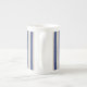Un clásico con un giro, brisa y fresco, la obra original de ZoeSPEAK sobre este tazón de la China Ósea es un patrón general de rayas azules y blancas oscuras, algunas anchas y algo delgadas. En el centro del diseño, las rayas son onduladas, rebosantes de agua, lo que le da al tejido un aspecto ya "revuelto".