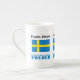 La bandera sueca azul y amarilla tiene la palabra SUECIA debajo, en letras azules con nevadas. Arriba hay un lugar donde puede agregar su nombre para que pueda personalizar su elemento. O bien, agregue el nombre de otra persona para un regalo personalizado.