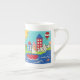 Taza De Porcelana Barco de vela y globo aerostático con Cityscape