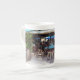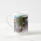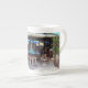 Casual, relajado, cabalgando en bicicleta, estas son algunas de las cosas que componen el cómodo estilo de vida retratado en la fotografía original de ZoeSPEAK en este Bone China Mug, Una bicicleta azul acuático se inclina contra un post frente a un bar al aire libre en Key West, Florida. Hay un arbusto verde en una bañera, bajo un toldo que coincide con el color de la bicicleta. El interior del lugar es oscuro y está repleto de taburetes de madera y sombrillas de color azul cobalto y agua sobre las mesas. Un bar de color azul acuático en la parte delantera completa la colorida foto.