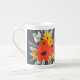 Taza De Porcelana Bouquet floral moderno monograma azul