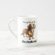 Taza moderna elegante de porcelana de hueso de color marrón arenoso para café de la mañana. Una delicada taza de porcelana de hueso que presenta escritura y gráfico elegantes. La escritura dice 'Café de la mañana con mi Dachshund', en una fuente exquisita y fluida. Debajo del texto, un gráfico encantador de un dachshund marrón arenoso de pie y mirando directamente hacia ti con sus ojos expresivos. Esta taza combina la sofisticación con un toque de fantasía, lo que la convierte en una compañera encantadora para tu café de la mañana. ¡Disfruta tus aventuras de compras!