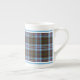 Mugre de china ósea en el tartán familiar para Clan Anderson, un elaborado patrón escocés de yeso azul claro, verde y rojo, con acentos negros, blancos y amarillos brillantes.