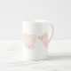 Copa de porcelana ósea con corazones de El día de San Valentín o aniversario en melocotón y rosa. Personalízalo con tu mensaje a mamá, esposa o novia.