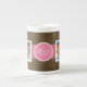 Cree su propio regalo pensativo rústico de la taza de té de la mamá con monograma para la esposa, mamá o para la abuela el el día de madre para exhibir las fotos de familia preferidas y para disfrutar de recuerdos mientras que ella savors su té de tarde. Fondo marrón rústico de la mirada de la arpillera con la bandera rosada oscura. Lee a la mamá en las letras caprichosas que miran como eran manuscritos por un niño en un círculo central del rosa. Ambos lados exhiben una foto de familia de encargo en marcos de la casilla blanca. Añada las imágenes de niños o de imágenes preferidas de la familia. Regalo único, personalizado que se convertirá en un recuerdo para la mamá o la abuela. Acento lindo de la decoración de la cocina del país.