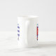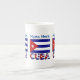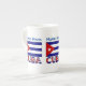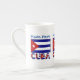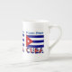 ¡La taza personalizada de china de hueso muestra la bandera cubana y la palabra CUBA debajo de la bandera y coincide! Usa rayas azules oscuras. Arriba, un lugar para tu nombre, en letras azules, para que puedas crear un aspecto personalizado o un regalo de bienvenida. Espectáculos de diseño en tres lados de la taza.