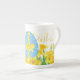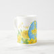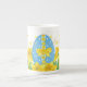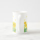 Sunny Daffodils de Pascua dibujados a mano y Huevo para sus celebraciones de Pascua en una taza de porcelana de bonito.