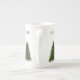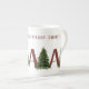 Añade tu inicial a este "Merry Christmas Tree Monogrammed Bone China Mug". Con árboles de Navidad en fila y texto, puedes personalizar.