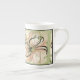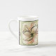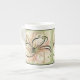 En tonos suaves de rosa, marrón, verde oscuro y negro, este original diseño floral muy estilizado de Leslie Sigal Javorek, en este tazón de porcelana fina, evoca sentimientos de gracia, energía y magia.