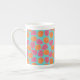 Bonito de colores vivos para el café de la China ósea, con un patrón de moda de frambuesas y mandarinas de color rosa profundo sobre un fondo azul turquesa que se puede cambiar si se desea. Como parte de la colección "Frutos de verano" de Posh & Painterly, puede personalizar fácilmente este tazón de café rotando o redimensionando el patrón de azulejos de frutas de verano.