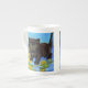 ¡Mug de China ósea con un gato al estilo Van Gogh con girasoles! Un gatito negro bonito cuidadosamente posa con flores amarillas. ¡Un regalo fabuloso para los amantes del gato y para los coleccionistas holandeses de arte!