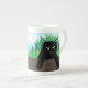Freddie Hanging es parte de mi colección sobre el tema del gato inspirada en nada más que mi hermoso amigo peludo! Esta es una taza de porcelana de hueso, con un ilustracion de un gato negro con patas colgando sobre una cerca de madera con hierba en el fondo y un cielo azul.