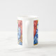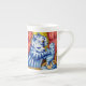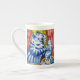 Mug de China ósea que presenta al gato y a sus gatitos pintando animales de Louis Wain (1860-1939). Un gato madre azul antropomorfizado sostiene a uno de sus gatitos azules. Dos gatitos más duermen en una canasta. Un regalo maravilloso para los amantes de los gatos y el arte inglés.