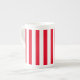 Este encantador tazón de porcelana de hueso se muestra en un bonito diseño de rayas rojas y blancas. Personalizar este artículo o compra tal cual.