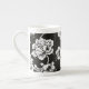 Taza De Porcelana Hueso China Mug-Floral blanca y negra