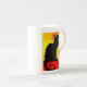 Mug de China ósea con el poster de Théophile Alexandre Steinlen, Le Chat Noir (1896). Un bonito gato negro se sienta al lado de un texto francés que anuncia un tour en cabaret. Un gran regalo para los amantes del arte vintage y del Art Nouveau.