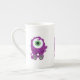 Monstruo de ciclopos adorable con un ojo grande parcialmente cubierto por un rizo perezoso y con un diente de buck grande en Halloween morado y bolas verdes y saluda olas. Un regalo lindo y festivo.