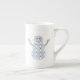 Cuatro cuadrados de azul pálido y morado están decorados con hombres de nieve que llevan gorros y ropa de invierno, como toboganes, pañuelos y mitones. El punzonado blanco aporta un toque decorativo, dando a la tónica repetida la apariencia de un edredón, creando un ambiente muy acogedor para el invierno. La forma de un muñeco de nieve crea una máscara para que el diseño añada un toque estacional final. Esta taza está disponible en tamaños y estilos de jumbo, espresso y porcelana ósea.