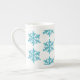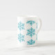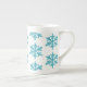 ¡Tiempo de navidades! Esta taza se muestra en el estilo de porcelana ósea con una divertida estampada festiva de copos de nieve. Personalizar este artículo o compre como está diseñado.