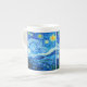 Mug de China ósea con la pintura al óleo de Vincent van Gogh La noche estrellada (1889). Inspirado por su estancia en un asilo, el arte representa un pueblo bajo un cielo nocturno de estrellas y luna azul y amarilla. Un gran regalo para los aficionados al post-impresionismo y al arte holandés.