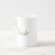 Novia, taza de porcelana de hueso elegante guion dorado chic blanco