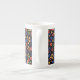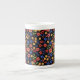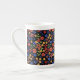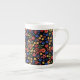 Un tazón de café de China con moda de huesos blancos al personalizar, con un patrón de mini impresión floral de bonito en un fondo negro que se puede cambiar si se desea. Este patrón de color de papel pintado a mano, que forma parte de la colección "Granny Print" de Posh & Painterly, se puede ajustar fácilmente para que se ajuste a cualquier Mug.