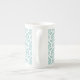 Taza De Porcelana Patrón Verde azulado de Feuille Damask
