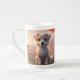 Esta adorable imagen muestra una delicada taza de porcelana de hueso adornada con un ilustracion del perro zodiaco chino. El perro está pintado en un estilo tierno y caprichoso, con sus rasgos únicos enumerados en el lado opuesto de la taza. La copa está muy bien elaborada con detalles complejos, lo que la convierte en una adición encantadora y significativa a cualquier colección.