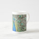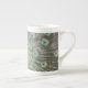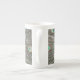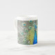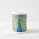 Disfrute de una taza de café, té o chocolate caliente en esta taza de bonito de porcelana ósea que muestra la imagen de una hermosa pavo real azul con plumas coloridas.