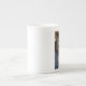 Mugre de porcelana ósea con el Dave regal un gato mascota de mesa plateado sobre ella