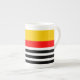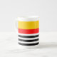 Mug con un diseño rayado en amarillo, rojo, negro y blanco. Creado para coordinar con la gama de accesorios de cocina y comedor de los souvenirs españoles.