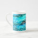 Taza De Porcelana Turquesa, negro, blanco 'Ondas' hueso China Mug