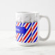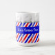 Taza roja, blanca y azul de poste de la peluquería de caballeros lista para que usted personalice con el nombre de la persona o el nombre de la tienda.