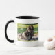 Preciosa taza de perros Wolfsspitz/Keeshond de color negro, gris y crema con asa negra y labio de taza. Será perfecta para los amantes de los perros Wolfsspitz/Keeshond. Que tienen algunos rasgos increíbles, como juguetones, obedientes, inteligentes, alegres y muchos más.