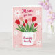 El diseño frontal muestra una taza de cerámica blanca que contiene un ramo completo de tulipanes estilizados, dispuestos como un regalo afectuoso destinado a alguien especial ❤️. Los tulipanes rojos se mezclan con flores rosadas más suaves que tienen rayas suaves, y los tallos y hojas verdes se abren hacia afuera en un grupo prolijo y afectuoso. El fondo es rosa pastel, salpicado con pequeñas formas de margaritas blancas y acentos punteados que añaden una textura ligera y amigable. Cerca de la parte superior, un breve mensaje de agradecimiento aparece en un rosa más intenso, centrado y fácil de detectar. Una segunda línea de texto se sienta en la taza misma en el mismo rosa más intenso, como si la taza estuviera diciendo un dulce cumplido. La disposición general se siente como un silencioso agradecimiento compartido entre amigos cercanos o familiares, como una mirada cálida a través de la mesa