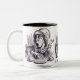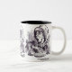 Alicia clásica en el ilustracion del país de las maravillas de John Tenniel. En diseño blanco y negro clásico. ¡"Es siempre té-tiempo" cuando usted está sorbiendo de esta taza!