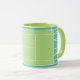 Taza de café con tema de tenis creativo con pelotas de tenis en una cancha de tenis verde. Para personalizar, edite el texto para agregar el nombre de su jugador de tenis favorito, entrenador o amante del deporte.