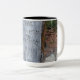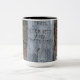 una taza que ofrece una imagen del marcador del trailhead de la montaña de la haya en Acadia.