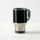 Light blue abstract geometric graphic on stylish and modern, personalized travel mug.