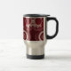 Dark Red Floral es un bello arte de IA que muestra patrones de encaje florales rojos y blancos. Haz feliz a tu mamá con esta maravillosa taza de viaje.