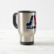 Mug de viajes con la bandera de Arlington, Texas. Una bandera blanca con una letra azul y roja A y una estrella plateada en el centro