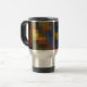 Un fresco barquillo de viajes, con un patrón abstracto a cuadros en tonos de azul oscuro, verde oscuro y colores cálidos de la tierra.