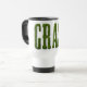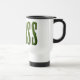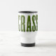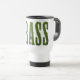 Mug de viaje con la palabra GRASS. El texto está hecho de una foto de hierba para hacer que parezca como si estuviera cortado de caldo. Buen diseño para las empresas de cuidado y siembra de césped.