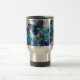 Composición vertical de mariposas morfo realistas, azules y blancas sobre fondo texturado gris. Mariposa morfo azul.