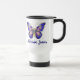 Cute Blue Pink Gold Mariposa Nombre Floral Personalizado de Viaje Mug. Un regalo perfecto para el hogar, al aire libre, de vuelta a la escuela o a la oficina.