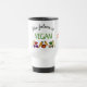 Declare su apoyo al veganismo con esta taza de viaje que dice: El futuro es VEGAN. Las palabras están escritas con letras negras y verdes, y la taza también está decorada con verduras brillantes y coloridas dibujadas a mano. Puede personalizarlo con su nombre en letras naranjas.