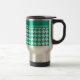 Un elegante Travel Mug sin derrame, con un patrón de control de casaca en el trending topic de Emerald Green. Hay una banda simple en la parte superior del patrón que se puede personalizar con un nombre o un texto - o dejar en blanco.